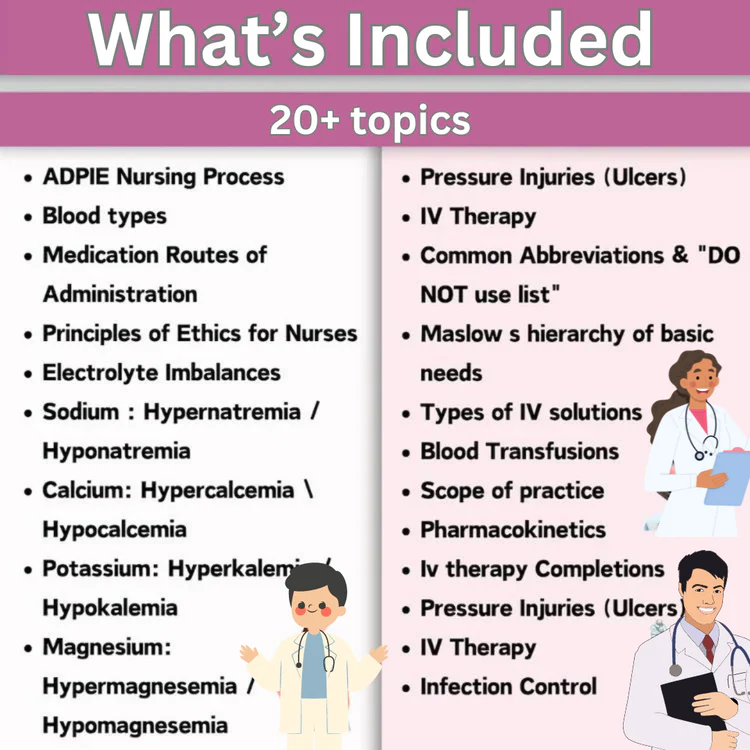 Master nursing and medical school with detailed guides on fundamentals, pharmacology, pediatrics, med-surg, mental health, and OB/maternity. π Boost your efficiency with cheat sheets, templates, planners, and organizers β everything you need to succeed! π